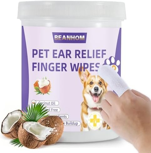Dog Ear wipes Finger – Ear Finger Wipes for Dogs & Cats – Pet Ear Cleaning Finger Wipes – Sooths & Deodorizes, Prevent Ear Itch & Inflammation – Fresh Coconut Scent, All Natural Ingredients – 60 Count