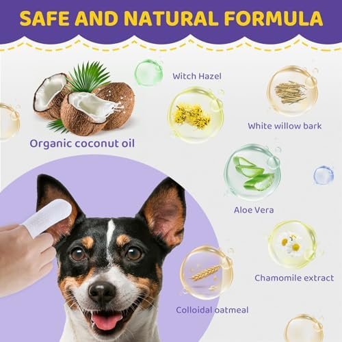 TRUSTED VET ORMULATED: The key natural ingredients of our dog ear cleaner wipes include: fermented coconut oil, colloidal oatmeal, witch hazel extract, white willow bark, chamomile extract, and aloe vera leaf juice. Gentle on your pets’ ears, our pet ear wipes are alcohol-free and free of parabens and fragrances, ensuring a soothing and non-irritating experience. Safe if licked or ingested.