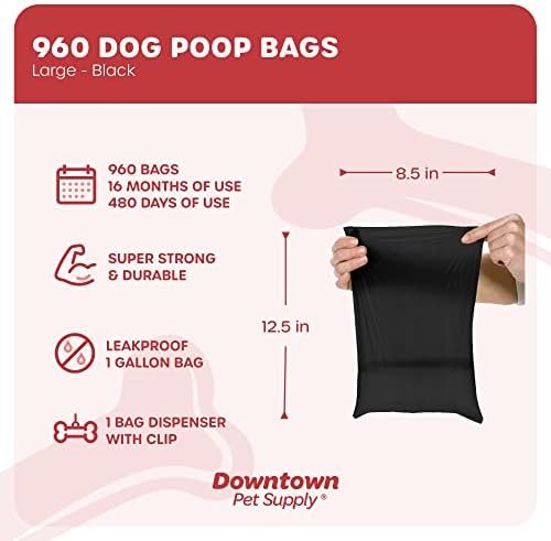 960 Dog Waste Bags: Includes 1 dog poop bag holder that holds a single roll of 20 dog poop bags refills. Dog poop bag dispenser comes with a clip and is compatible with most other poop bags available. Clips onto dog leash or dog harness