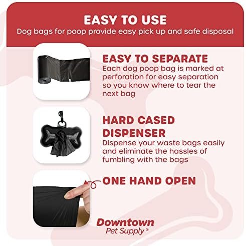 Easy To Use: dog bags for poop are perforated for easy separation to make life easier when cleaning up after your dog. Waste bags tie easily and are leak proof bags for adult dog poop and puppy poop
