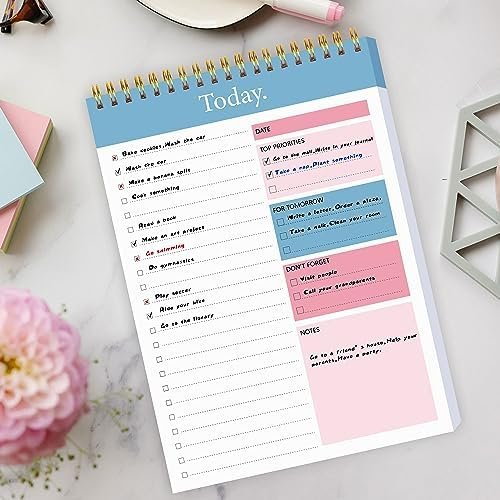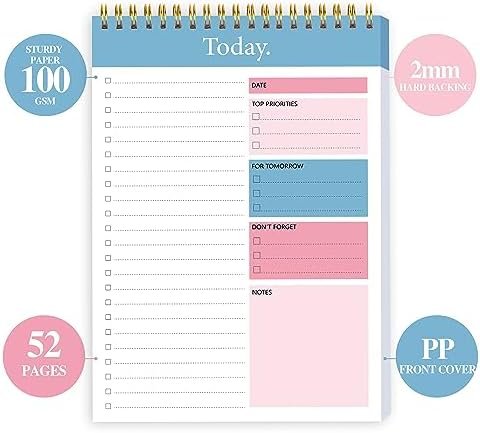To Do List Notepad – Daily Planner Notepad Undated 52 Sheets Tear Off, 6.5″ x 9.8″ Checklist Productivity Organizer with Hourly Schedule for Tasks